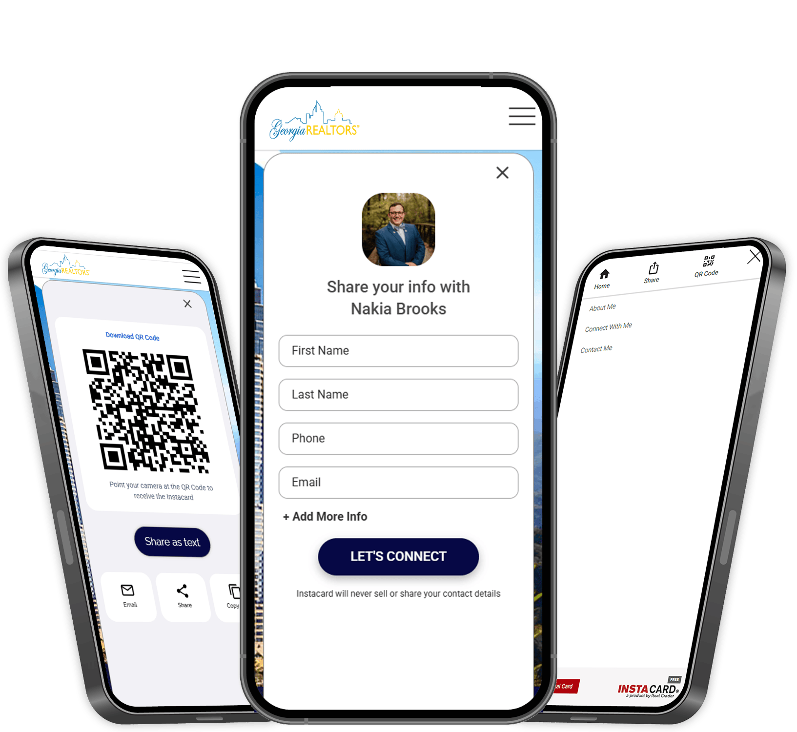 Instacard is your central hub for your online and social media profiles. With a simple tap on your phone; you can share your information by QR, SMS, or Email.