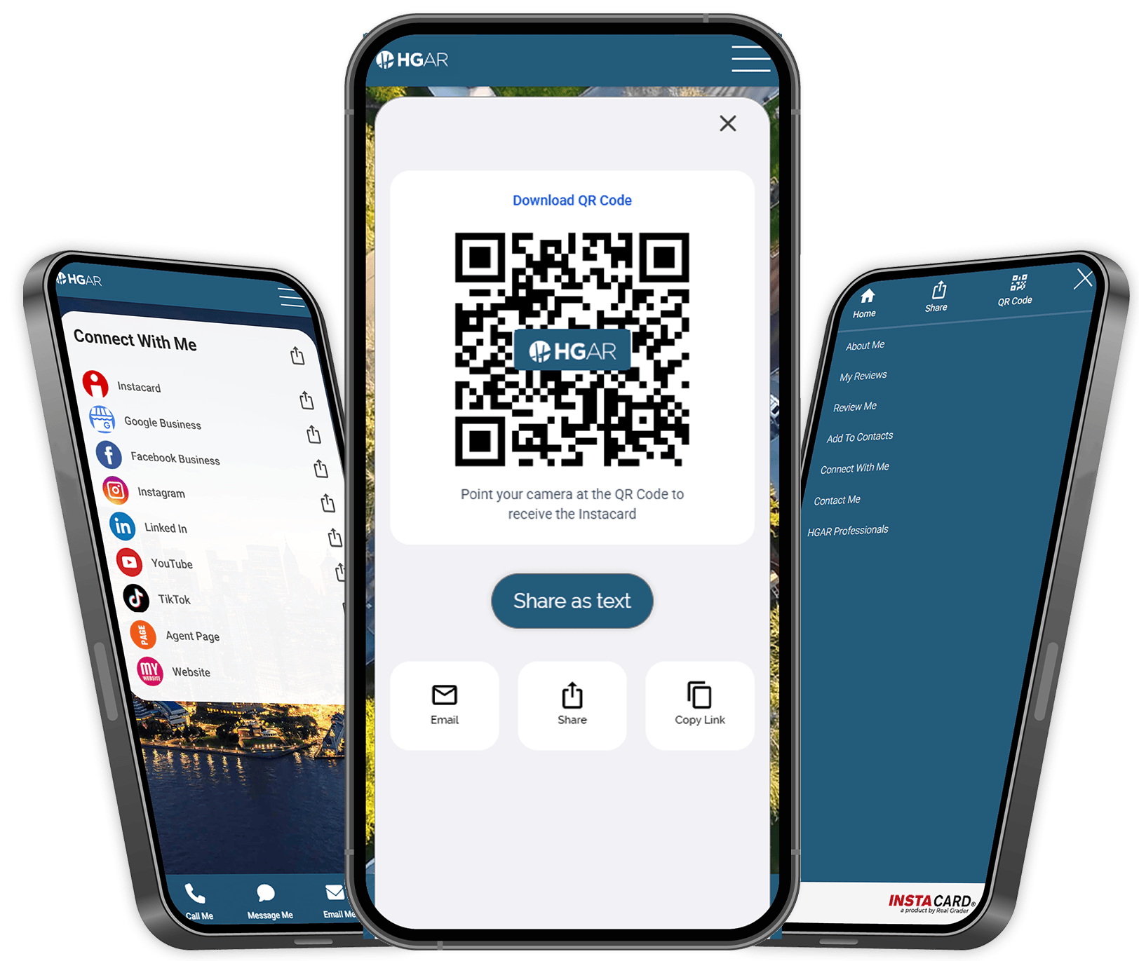 Instacard is your central hub for your online and social media profiles. With a simple tap on your phone; you can share your information by QR, SMS, or Email.